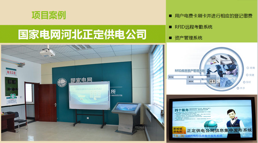 天创科林针对电力行业特点专业研发了触控交互系列产品,包括刷卡缴费系统、RFID远程考勤系统、和资产管理系统,实现了电力行业业务办理的智能化。利用触摸屏体机、无线pos机终端等触控产品及相关软件,实现准确、快速、实时、共享的业务办理及管理查询,减轻了电力工作员工负担,提升了工作效率,实现了电力行业的科技化提升。