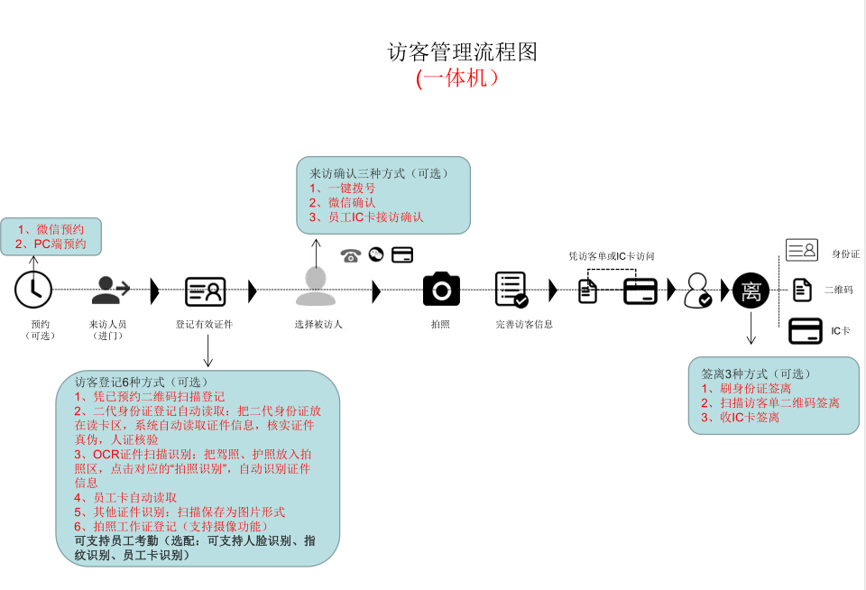 系统采用微信预约、发放临时卡、打印访客单、登记进入等多种方式供单位自主选择。