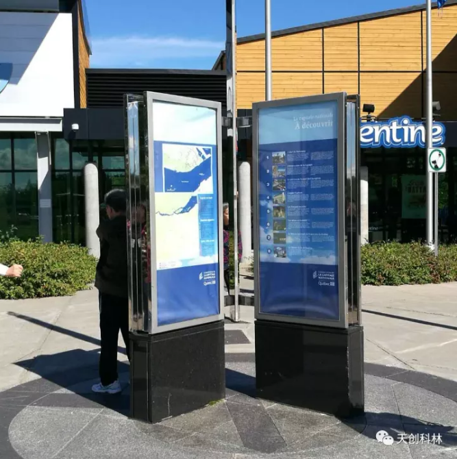 户外大数据终端设备集流媒体技术、人工智能技术、虚拟成像技术、地图地位、拟物化操作、手机APP查询等技术为体,用于显示户外天气、环境状况、新闻播报等,让民众真正与数据的互动起来。