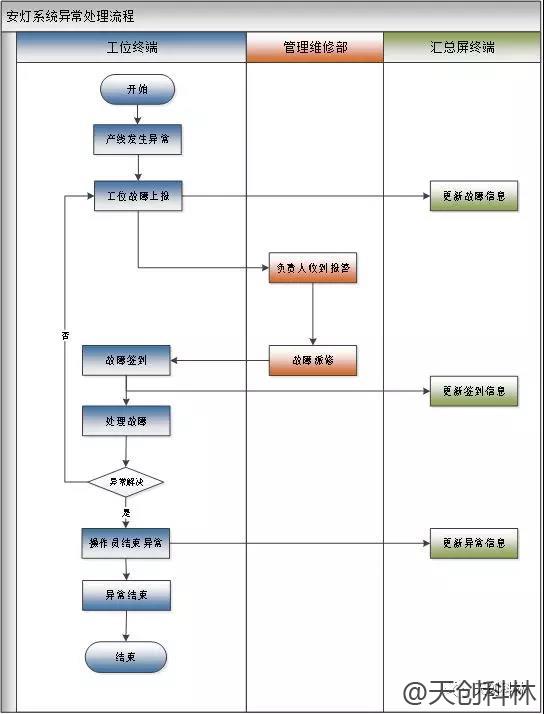 当某条生产线或工位遇到(品质异常、设备故障、缺料等各种异常)时,能时间呼叫生技部、质量部、物控部、采购部、制造部等相关部门在时间来现场处理问题;同时能通过显示大屏幕把生产相关的信息显示出来,当遇到紧急故障时保证相关人员可以直接通过显示屏就能清楚了解到异常出现的地方及类型等详细内容;并且能跟踪异常状况到问题解决的整个流程,促使解决问题流程的实施等。