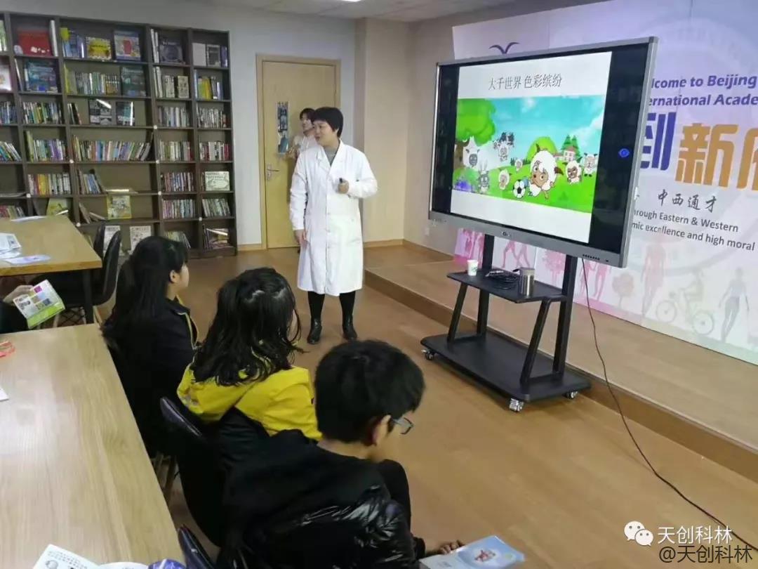 今天,在北京新府学外国语学院演讲厅内,正在进行场公益爱眼护眼健康体检知识讲座。演讲期间医生用做演示的智能电子设备,正是天创科林会议体机。