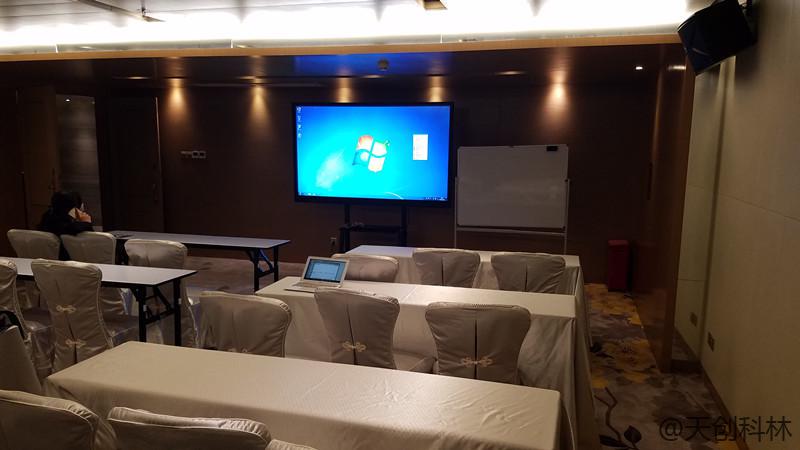 像这个会议室,大概面积30平米,选择86英寸的,后排也能看清楚了。
